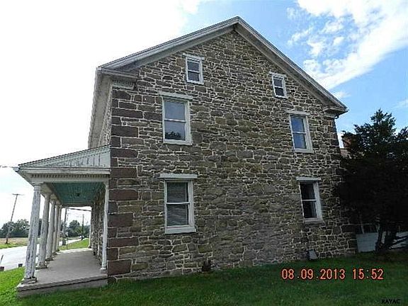 Stone farm house on 1.95 acre corner lot, Over sized 2 car block garage, approximately 31x75 Pole building with electric lighting and Mechanics pit. Home features: Country Kitchen, Double LR, DR, 1st floor 1/2 Bath & Full Bath, 4 Bed Rms, a Walk-up attic. Hot water BB Heat, and More. Property needs TLC and is price accordingly.