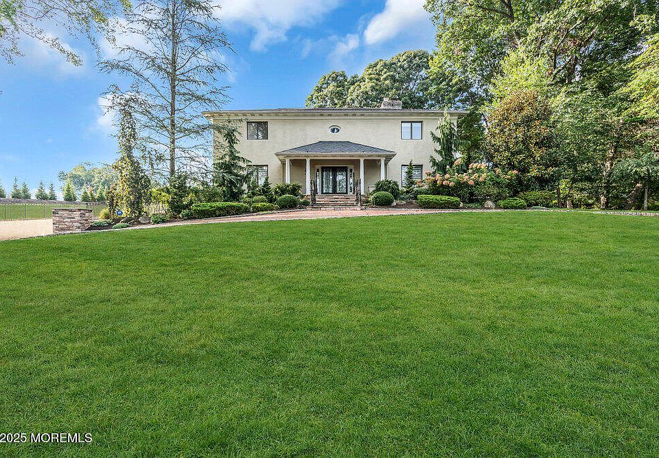 Experience the best of Monmouth County living in this custom home on 2.7 acres with sweeping views of the beautifully maintained Navesink Country Club. Arrive through a circular drive & step into a sun-filled 2 story custom home with a contemporary flare. 4 bedrooms & 3.5 baths. Designed for both entertaining and everyday comfort, the home features spacious rooms, a chef's kitchen with stainless appliances which opens to a comfortable family room with stone fireplace overlooking the sweeping property. A three-season porch invites relaxed summer afternoons. The updated primary suite offers a private retreat with spa-like bath & custom walk-in closet. Perfectly located just minutes to the high-speed ferry to Manhattan, beaches, and premier sporting clubs. This home blends elegance, convenience, and an enviable lifestyle.