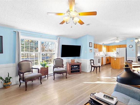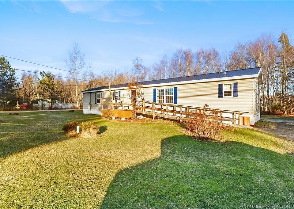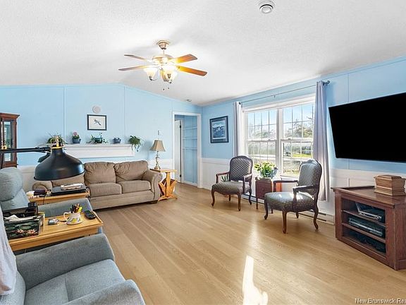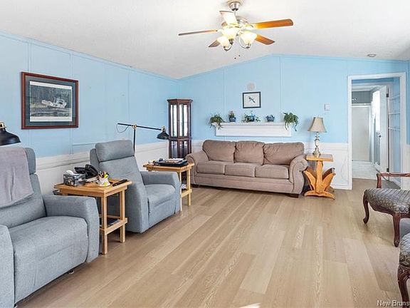 Charming 1,120 sq. ft. mini home on leased land, ideally situated between Fredericton and Oromocto and close to all amenities. This bright and inviting home features an open-concept living room and kitchen, complete with patio doors leading to a spacious deck—perfect for entertaining or enjoying peaceful outdoor time. A wheelchair ramp provides added accessibility and convenience. With 2 bedrooms and 2 full bathrooms, the layout offers excellent privacy, including a large primary bedroom with its own ensuite and walk-in closet. Recent updates offer peace of mind, including new metal roof (2023) and new baseboard heaters (2024). A well-kept, accessible, and conveniently located home—move-in ready and perfect for comfortable living. Leased lot fees will increase to $430 mth for new owners