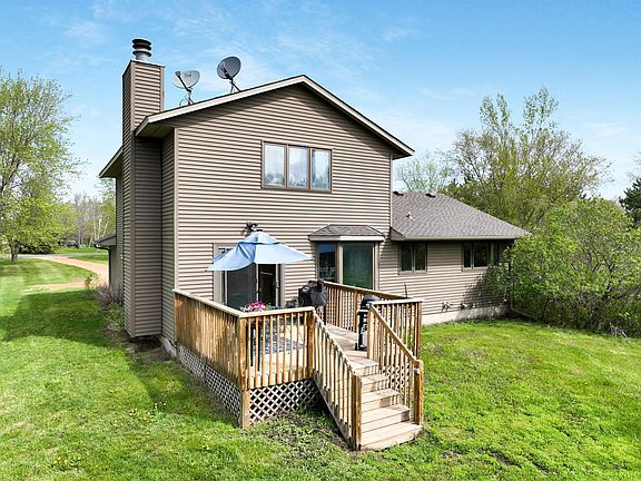 Nearly 3 acres in a quiet neighborhood in Hudson, WI. Nature abounds and easy commute to Twin Cities. Fiber Optic, High Speed Internet allows work from home. Wood burning masonry fireplace with heatilator, 2 Huge Bedrooms, 2 Bathrooms with third plumbed to finish. Beautiful views in quiet, safe neighborhood. Newer funace and water heater. New shingles two years ago. New carpet, Huge kitchen with family room and walk out deck. 1100 unfinished basement with plenty of room for two more bedrooms and additional family room. Concrete poured basement with high ceilings. Lots of light. One owner. Plenty of storage. Beautiful views of nature, and peaceful.