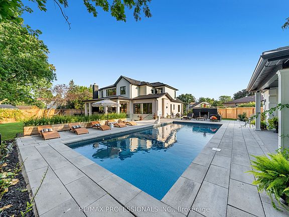 Welcome home to this transitional custom built home with the perfect blend of modern and comfort. This grand residence is built with high end finishes and dressed in imported Spanish brick and stone. 583 Weir Ave is not merely a masterpiece but it also sits on a desirable premium lot of over 16,000 square feet. The house sets back from the road, providing ample privacy along with eight exterior parking spaces on a heated private driveway. Offering nearly 8,000 square feet of refined living space, it includes a finished basement with a walk-out and an over 400-square-foot guest/pool house completed with a wet bar and bathroom. A soaring twenty-foot foyer, open to above, welcomes you into an airy main floor with the perfect layout. Floor-to-ceiling windows fill the space with natural light, while the surrounding greenery ensures privacy throughout. A residence that was meticulously crafted with no detail overlooked. The chefs kitchen features an oversized island, built-in appliances, a concealed coffee station, a hidden pantry room, a sophisticated butlers pantry, and much more. The upper level offers four generously sized bedrooms, each with its own ensuite bathroom and walk in closet. A perfectly designed and sized laundry room is also conveniently located on the second floor. The basement features a bedroom, bathroom, sauna, bar, games room, gym area, and a private, soundproof movie theatre. A serene backyard awaits, complete with an 18 by 36 foot heated saltwater pool, a fully equipped guest house, a covered porch with a double-sided fireplace, and additional green space. Your search truly ends here!