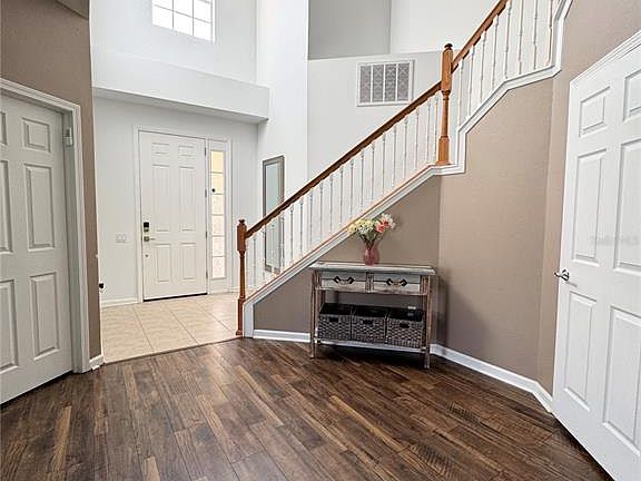 Welcome to your dream home! This beautiful 4-bedroom, 3.5-bathroom, two-story residence has over 2,500 square feet of living space that perfectly combines comfort and style. As you enter, you'll be welcomed by a spacious open-concept living area that is perfect for entertaining. The home features a generous kitchen equipped with stainless appliances, granite countertops, and a large island that any chef would adore. Adjacent to the kitchen is the inviting dining-great room area, that is ideal for hosting those family gatherings. Upstairs, you'll find the luxurious master suite, complete with a walk-in closet and a spa-like bathroom featuring a soaking tub and a separate shower. The 3 other bedrooms, one featuring an en-suite bathroom and the laundry room are also upstairs and are of generous size. The spacious back screened-in lanai and fenced in back yard is the perfect space for the family barbeques and relaxation. Situated in the desirable Parrish community of Harrison Ranch; a community that offers an exceptional lifestyle with a variety of amenities, including a Jr. Olympic-sized pool, fitness center, tennis courts, pickleball courts, basketball courts, and scenic hiking trails. The home is conveniently located near restaurants, shopping centers, top-rated schools, and has easy access to I-75, which provides easy access to Tampa, St. Pete and Sarasota. Call today to schedule a private showing and don’t miss your chance to make this your forever home!