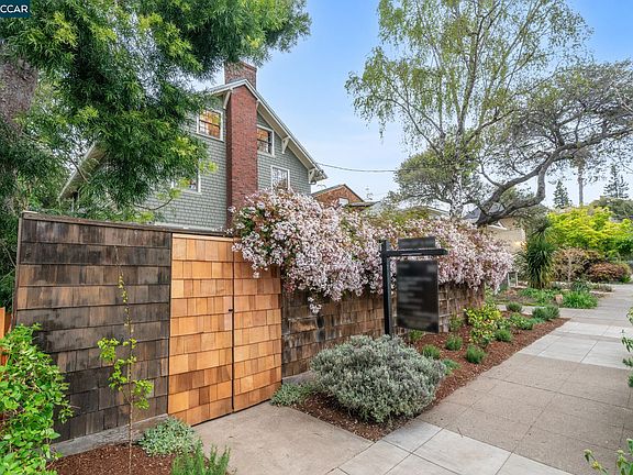 Charming shingled New England-style home in the heart of Rockridge that is actually two homes in one: the expansive three-story front home, and a delightful cottage in back that wraps around a giant Oakland oak. One block away you’ll find the gourmet markets, coffee houses, and independent boutiques that line College Avenue, plus BART and easy freeway access. And, local lore and several neighbors attest that the band Jefferson Airplane lived here in the sixties. Enter the front home via a tall wooden gate spilling over with jasmine. French doors beckon from an ample porch, and a more formal entry on the side takes you into a large living room with oak flooring, fireplace, high ceilings, and large original paned windows. The dining room looks out to a garden of mature camellia bushes, and theres an adjacent kitchen nook with built-in benches. Upstairs, find three bedrooms and a recently remodeled bathroom with marble tile, and then up again to a third floor dream space of light and views. The two-story home in the back matches with its shingled exterior, natural light, and spaciousness. The kitchen has been recently updated, adding a fresh and modern touch to the property, and the downstairs bedroom and living area has its own private entrance.