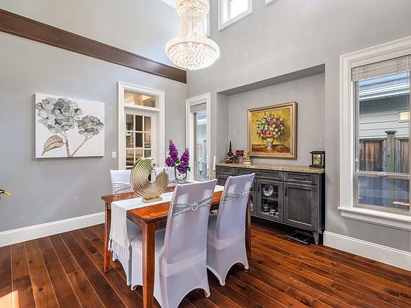 Welcome to Marina Garden Estates — where elegance meets comfort! This beautifully maintained 4-bedroom + den home features elegant chandeliers, a 2023 hot water tank, and a newer skylight. Enjoy year-round comfort with the newly installed heat pump system, providing both cooling and heating. Radiant in-floor heating is also available on both levels. The main floor offers a gourmet kitchen with high-end finishes and crown molding in the living and dining rooms. Upstairs, you’ll find four spacious bedrooms, each with custom closet organizers for smart storage. Located within walking distance to Nielsen Grove Elementary, this home offers a perfect blend of luxury, warmth, and convenience. Book your private showing!