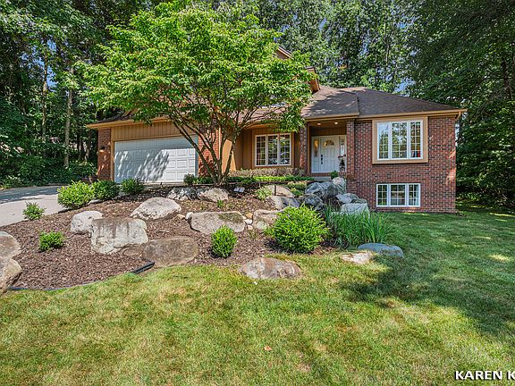 The private, wooded backyard features a new composite deck and a bonfire area, perfect for outdoor gatherings. Additional parking space available next to garage. Home is exceptionally convenient to get to Ada Village, expressway, restaurants, schools, grocery stores etc. This meticulously maintained and updated home is ready for you to move in!!