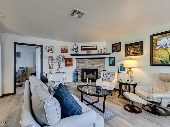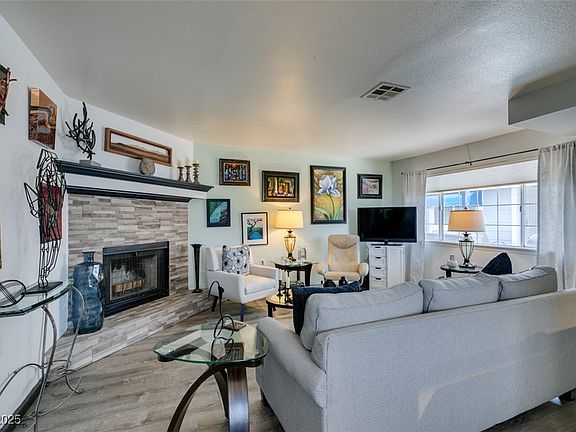 The kitchen offers plenty of natural lighting, beautifully upgraded granite countertops, recessed lighting, and all appliances included. The living room has a cozy fireplace offering a nice, serene retreat, with an updated brick mantle and design features. The spacious primary bedroom features a walk-in closet with plenty of space for all your wardrobe needs. There's plenty of style with the plank-style tile flooring and the custom window treatments, and a NEW AIR CONDITIONER/HEATING SYSTEM. Installed in 2024. The amenities include two sparkling pools, a spa, a basketball court, a dog park area, and a gated entry. HOA dues cover water, sewer, and trash, providing low-maintenance living, peace of mind. Conveniently located near shopping, dining, parks, Galleria Mall, local casinos, and major freeways. Great for anyone seeking an affordable, move-in-ready residence. ***FHA APPROVED CONDO ***
