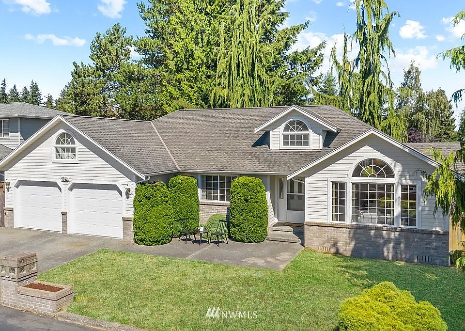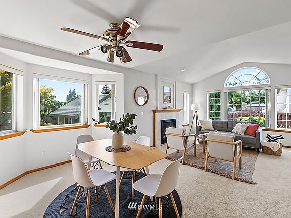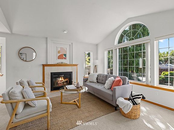 Beautiful Everett Rambler, move in ready! Spacious & open layout w/ vaulted ceilings. New carpets. propane fireplace w/ lots of natural light. Summer time is cool with newer heat-pump. 3rd bedroom makes great home office or work space. Wired for backup generator. Master suite w/ walk-in closet. Two car Garage finished and heated space; perfect for home gym or shop. Plus off street parking. Fully fenced private backyard with mature shade trees. Storage shed. Nearby transit, shopping, and freeway
