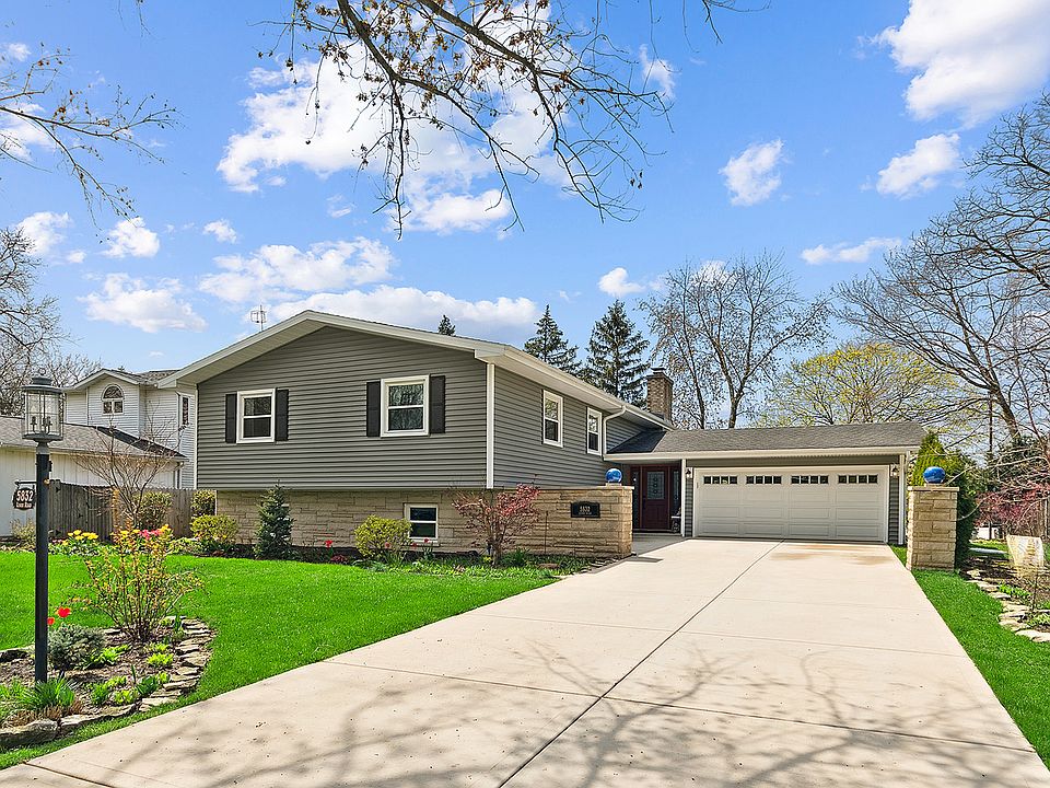 A truly rare opportunity presents itself - long time owners have meticulously and methodically updated and tended to this spacious T-raised ranch, making it the move-in property you've been seeking. Fabulous cul-de-sac location in the perpetually popular Meadows. Extraordinary curb appeal, with new concrete driveway, stone return walls w/blue glass toppers, elegant landscaping filled with Spring flowers and perennials. Gorgeous Craftsman-style leaded glass entry door w/dual sidelights graces the roomy foyer w/guest closet and direct access to the garage. Head up the stairs to the main level and be impressed! Hardwood flooring, white crown molding, and an open floorplan are features of the living and dining areas. Spectacular kitchen (fully new in 2020) with 42" custom white soft close cabinets w/oversize pot/pan drawers, tile backsplash, granite counters, can lighting, KitchenAid stainless appliances, long breakfast bar w/furniture panel accents...the heart of the home and a chef's delight. Custom 8' patio door leads to large deck for grilling and chilling. Light-filled master bedroom offers hardwood flooring and includes a full private bath. Two additional bedrooms and a hall bath (new in 2024) w/awesome sink/vanity room and separate shower/water closet area complete the main level. The lower level has a wonderful family room w/cozy wood burning fireplace and another 8' sliding door that walks out to a private concrete patio w/accent paver posts. Two additional bedrooms and another updated bath w/shower provides a great opportunity for related living (one bedroom includes direct access to the hall bath). The massive laundry/utility room is loaded with storage cabinets and offers plenty of space for home hobbyist, crafter or add a canning kitchen! Attached 2+ car garage has an extra workshop area, pull down stairs to the attic, and a door with access to the yard. Multiple outdoor living areas include the deck, the patio off the family room and a 2nd patio at the back of the yard, perfect for sunning or a 2nd seating area. Mature trees and bushes line the back yard lot line. This home is pet, smoke and wallpaper free and so very easy to love. PS: Did I mention THAT KITCHEN?