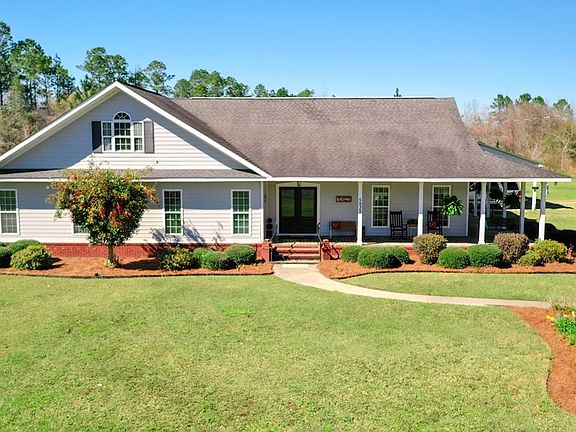 Better hurry on this one as it won't last!!! Great home on 4.82 ac. Wrap around porch leads to home with open floor plan displaying lovely pine hardwood flooring. Living room with remote controlled gas fireplace and built-ins. Kitchen with large island with quartz counter top, farm style deep sink, soft pull drawers, oven/range, dishwasher, microwave, refrig and walk-in pantry. Dining area. Master bedroom with walk-in closet that leads to tiled master bath with sink with vanity area and jacuzzi tub and separate tiled shower. 2 add'l bedrooms downstairs with carpet and walk-in closets. Tiled laundry room with sink/cabs. Mechanical room with easy electrical access. Closet space made for a gun safe. Tiled 1/2 bath. Upstairs is the 4th bdrm/bonus room and add'l floored attic space w/ blown insulation. Great outdoor patio area with bricked up fireplace for entertaining or just relaxing and taking in nature all around. Covered attached double carport for parking and a 1 bdrm efficiency apt