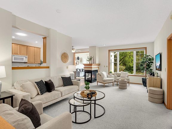 three-sided gas fireplace, and bright sunroom with peaceful views of Rice Creek and surrounding wildlife. The kitchen and dining area provide a convenient layout for everyday living and entertaining. The main level features a primary suite with a walk-in closet and private bath with separate tub and shower, plus an additional bedroom, half bath, and laundry. Step outside to the patio to relax and enjoy the tranquil natural setting, hop in the path for a walk in nature or grab your bike and go on an adventure. The lower level offers a large family room, third bedroom, 3/4 bath, and generous storage space. Located in a sought-after neighborhood near parks, trails, and paths - this home combines comfort, convenience, and serene beauty in one perfect package. This is one you must see in person!