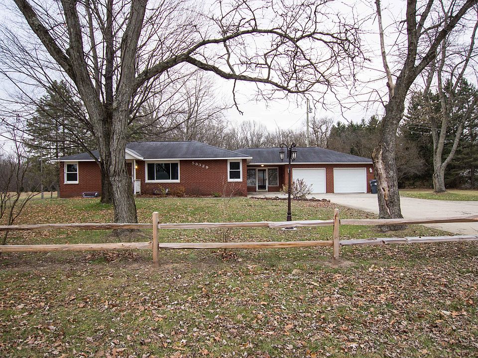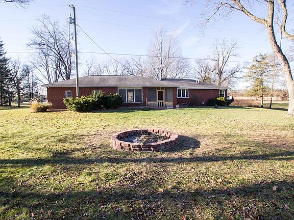 Brick ranch just outside of town. Spacious home with hardwood floors throughout most of the main level. Formal dining room with bay window. New replacement windows. Freshly painted. Newer appliances. Newer efficiency furnace and air. Basement includes a finished family room. 12x18 breezeway between house and 2-car garage. The breezeway also leads you to a 11x12 screened porch. The back yard features a large burn pit and two storage sheds. The 14x30 shed has 350 sq ft of finished space and electric and would make a great getaway or hobby space. Tons of wildlife.