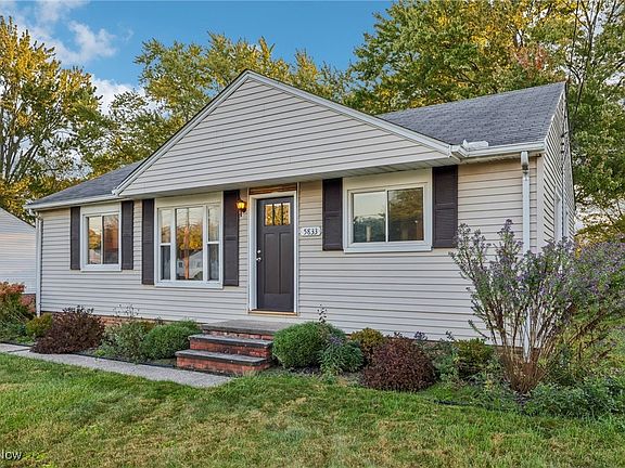 Welcome to this beautifully updated 3-bedroom, 1-bath open concept ranch situated on a peaceful .58-acre lot in North Olmsted. This well-maintained home offers charming curb appeal and an inviting, modern interior. Updates include lighting, doors, windows, bathroom, and kitchen featuring modern cabinetry, solid surface counters, ceramic wood-plank flooring, glass tile backsplash, and stainless steel appliances for a bright and airy feel. The open layout is filled with natural light from large windows, creating a warm and welcoming atmosphere. The full basement with laundry offers excellent storage and the opportunity to add your personal touches. Outside, enjoy a private, partially fenced backyard and a 2-car detached garage with workshop space. Conveniently located near parks, major highways, and Crocker Park’s dining and shopping amenities, this home perfectly blends comfort, style, and location.