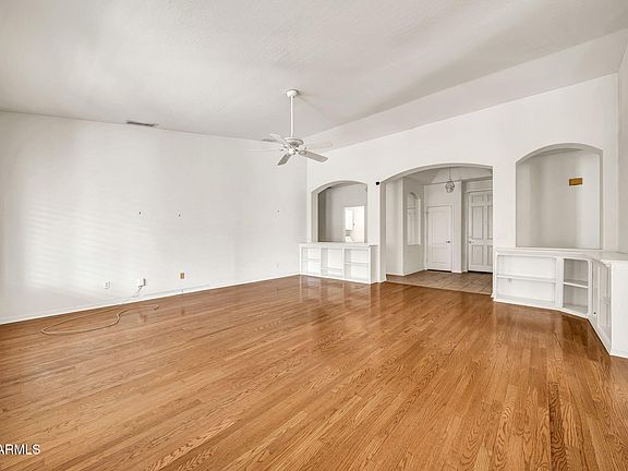 Amazing 3 bedroom, 2 bath single-story home with a 3-car garage in a prime Glendale location! This open floor plan showcases wood laminate and tile floors throughout the living areas. The spacious living room flows seamlessly into the kitchen, which offers abundant cabinetry, laminate counters, and plenty of natural light. The oversized primary suite features an ensuite bath with dual sinks, a Roman soaking tub, and a separate shower. Step outside to your private desert oasis with mature trees, lush landscaping, and a stunning lagoon-style PebbleTec pool—perfect for relaxing or entertaining. A true must-see!