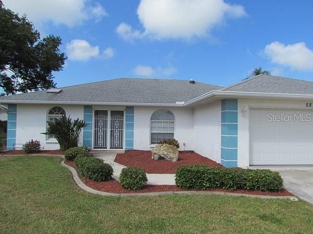 *** Gulf View Estates Beauty *** ONLY 2.5 MILES TO TOES IN THE SAND at Manasota Key Beach. *** Let's start at the front, and admire this "house on the hill" with the extra long driveway, and pretty curb appeal. Step in through double French Doors (with screened entry, to catch those cool sea breezes), and smile at the soaring ceilings, a full back wall of sliding glass doors, and lots of natural light. The living and dining rooms boast rich wood look laminate flooring, and flow nicely into the kitchen and casual dining bistro area. White and bright and clean, with convenient breakfast bar and stainless appliances. The smart split floor plan offers good spaces and privacy for everyone. The Owners Suite is generously sized, with 2 closets, and an en suite bathroom (double sinks, step in shower, classic black and white finishes). On the other side of the house is the guest wing with 2 spacious bedrooms, and a full guest bathroom. All three bedrooms enjoy the same rich wood laminate flooring found in the living and dining rooms. Tile in the kitchen and baths. Fresh and low maintenance. NO CARPET HERE! Your favorite room of the house may be the 20 X 10 screened lanai with tile floors - perfect for lounging or entertaining. Gulf View Estates has LOW HOA fees of only $215 per year. NO CDD's. NO City Taxes. It's a small, charming neighborhood with streets named after our past Presidents - perfectly located close to beaches, shopping and restaurants, and easy access to US 41 and I75. Isn't this exactly what you were hoping for?