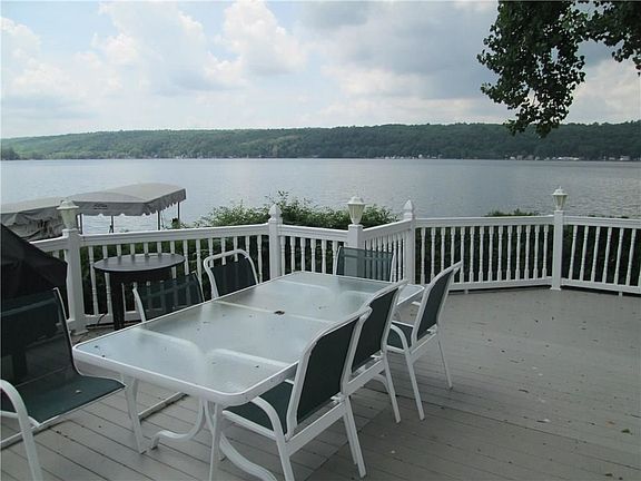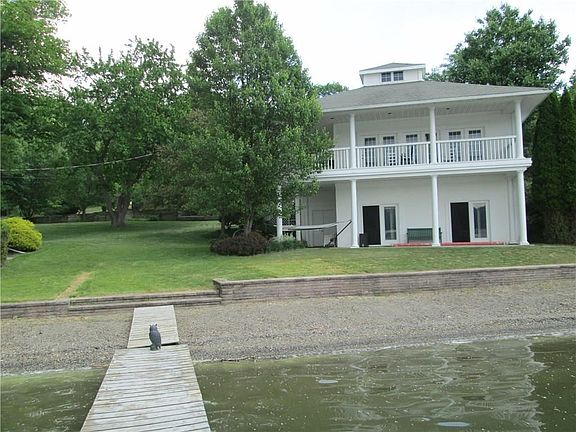 Priced way below recent appraisal and what seller paid years ago. Plus many improvements done!! *WOW!* Priced to sell fast! Over 203 ft of beach front! Picture perfect quiet, private and flat setting. Updated with newer tile floors, furnace, air, ceiling. Big rooms, covered porches, patios, parking and huge carriage house & garages. Dock, break-wall/boat launch. Most furnishings remain. So much more with this rare property! CALL TODAY!