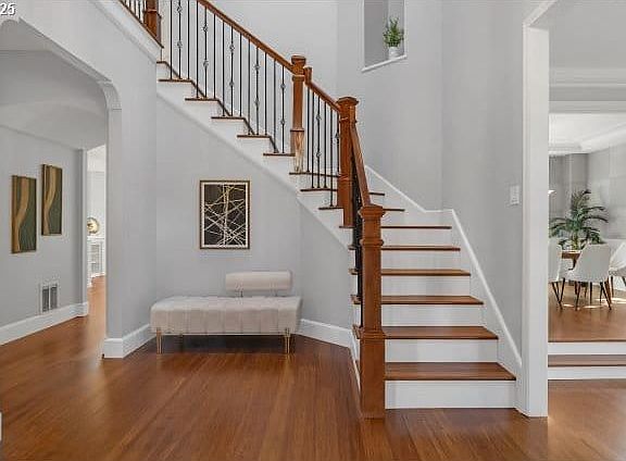 Gorgeous, updated home w/almost 3400 square feet of living space! Well Maintained w/lots of natural light flowing throughout the home. This spacious floor plan surrounds you in elegance with designer features through-out the home. Engineered Bamboo flooring making for easy, carefree living. Upon entering the home notice the large foyer, high ceilings & stunning updated wrought iron staircase. Enjoy working from this office/5th bedroom which is filled with lots of natural light. The Formal Living/Dining area has wood burning fireplace with beautiful mantel. Dining area has wainscoting & designer fixtures. This gourmet kitchen is a cook's dream with plenty of cabinets, granite counter tops, tile backsplash, island with gas cooktop, downdraft & eating bar, pantry, undermount sink, new stainless-steel appliances, eating nook with build-ins & a door which leads to the large covered deck, 2 patios with views of the mature trees. Off the kitchen is the large Family Room with gas fireplace, making it perfect for entertaining. Upper-level Primary Bedroom has a ceiling fan, French doors & a bay window making it a great reading nook area. The primary bathroom has jetted tub with tile backsplash, walk-in rain shower, dual sink vanity with granite counters & title backsplash, water closet w/skylight & spacious walk-in closet with plenty of storage. In the 3rd bedroom there is access to extra storage through the closet. The bonus room/4th bedroom has access to the hall bath. Relax in this beautiful fenced back yard which has a covered deck w/2 patios, enlarged flower beds with flowering plants throughout with view of the trees for privacy. There is a creek just beyond the backyard fence. Oversized 3 car garage with cabinets gives you plenty of storage with room to store your outdoor toys. Located on a quiet corner lot which offers you a tranquil setting & views, this home is stunning! 2025-11-20