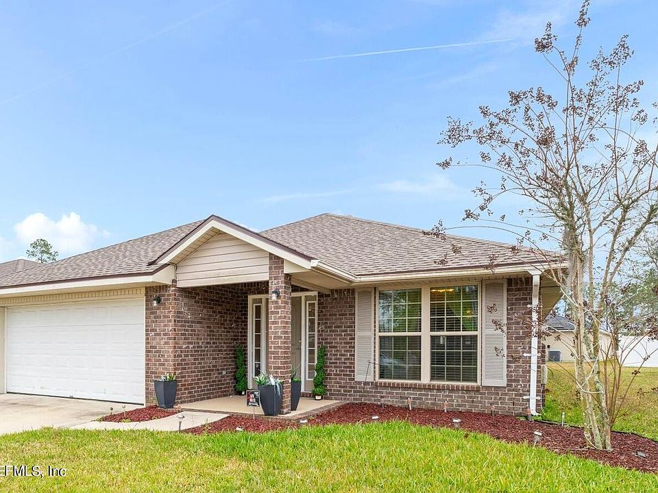 Welcome to this charming fully brick home situated in the serene Pickett's Cove subdivision. The house boasts a spacious formal living/flex space area that seamlessly transitions into the open kitchen floor-plan. The kitchen is adorned with exquisite mahogany cabinetry, beautiful countertops, and an upgraded backsplash. A substantial breakfast bar complements the dining area, creating an ideal space for entertaining that flows into the family room. The home features four generously sized bedrooms split from the master bedroom. And has two full baths, including a master bath featuring a private garden tub and separate shower. The home provides both comfort and luxury. Picture yourself unwinding on the extended covered patio, creating the perfect setting for enjoying quality time with family and friends. This residence is a perfect blend of functionality and style, offering a warm and inviting atmosphere for its occupants.