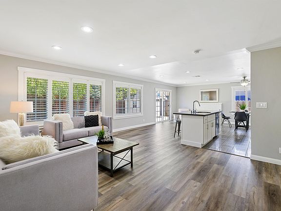 The new exterior paint and fresh landscaping welcome you home to this fully remodeled SOUTH facing one story with large SIDE YARD ACCESS. Open and spacious floor-plan with large great room. Luxuriously upgraded interior features, plank floors, crown molding, recessed lighting, plantation shutters and dual pane windows. Kitchen is both beautiful and functional with slab counters, white cabinetry, stainless appliances, large island and gas range. Primary bedroom with custom barn door, ceiling fan, walk-in closet and en-suite remodeled bath with walk in shower. Backyard features large grassy area, custom storage shed or play house and huge side yard or RV ACCESS. NO HOA and walking distance to nearby schools! Close to freeway access, shopping, wineries, and hiking trails. MUST SEE!