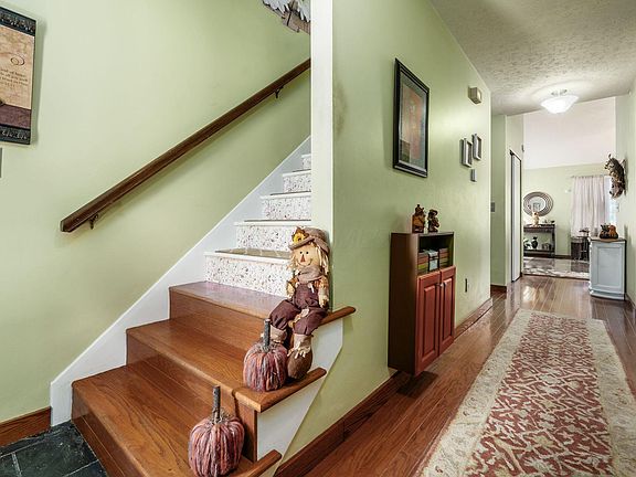 Off of the main hallway is a gorgeous vaulted living room with wood flooring, ceiling fan and electric fireplace. Around the corner is the open kitchen with reams of cabinetry, tray ceiling and cookie making counter tops. On the opposite side of the kitchen is a convenient first floor laundry behind etched glass doors. Walk through the kitchen to the vaulted dining room large enough for your holiday feasting and includes a built in buffet for party and dinner supplies. Outside, enjoy the seasons from your private patio with hot tub on your large deck overlooking the generous fenced backyard with 2 sheds down the street from a park and Alum Creek bike path! A deep 2 car garage finishes it off. Be in the home and ready for the upcoming Christmas season!