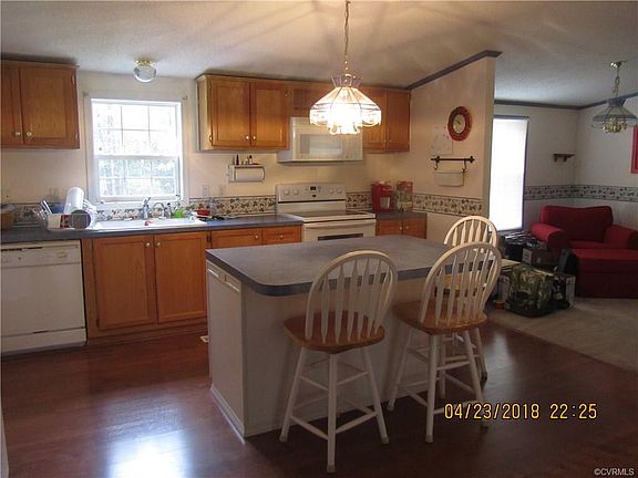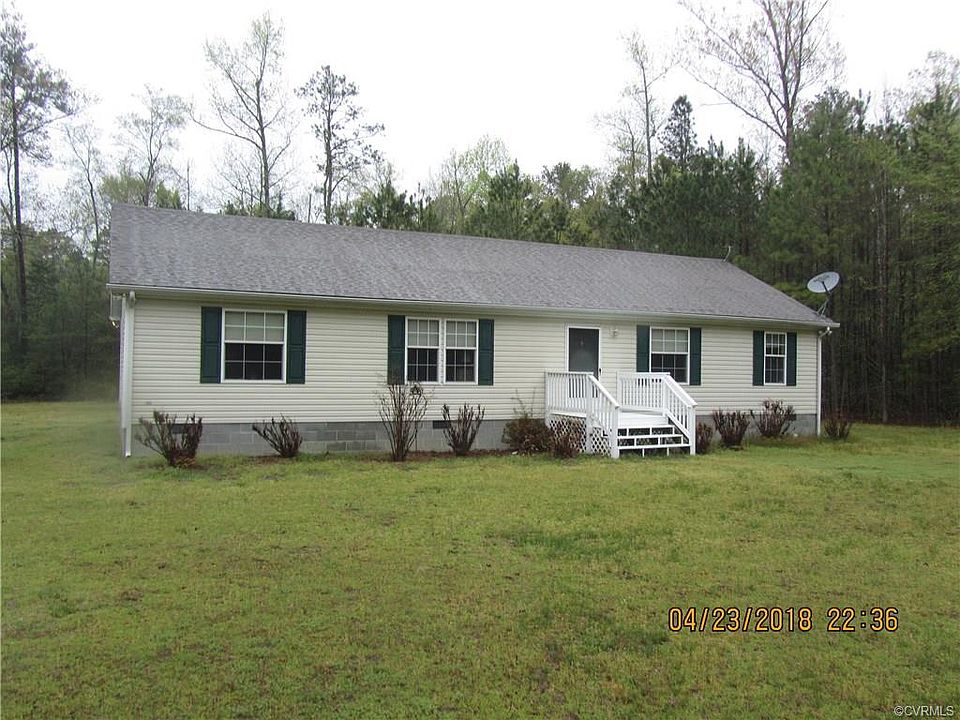 Manufactured home with 1512 sq ft is situated on 4.46 acres in New Kent County. This home features 3 bedrooms and 2 full baths, a family room and formal living room, kitchen with all appliances to convey, island with eat-up bar, and dining room all with Cathedral ceiling. Master bedroom with a walk-in closet, suite with double vanity, separate shower and jetted tub. Utility room with washer and dryer to convey. Additional features include maintenance free vinyl siding, 1.5 year old heat pump, rear deck and 3 sheds. All sheds to convey AS -IS. Call today!