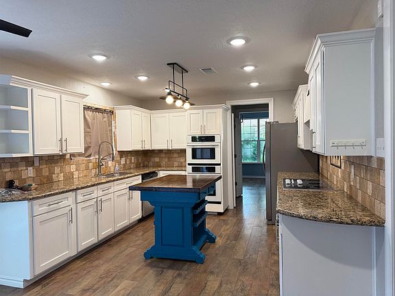 Located in the Heart of Beaumont! This home has all the Bells and Whistles! It is a must-see! Kitchen features Granite counters, Island, great natural lighting throughout with Breakfast room. Upscale Wet bar across from huge walk-in pantry. Fridge STAYS! Formal dining/family room, Expansive living room with French doors going to back patio and corner gas starter Fireplace. Split bedroom floor plan. Primary room has beautiful windows to backyard, Gorgeous Bath with separate tile shower with glass front and double sinks. Exterior features gated entrance, Fenced backyard and large covered patio. Utility room features storage closet and sink. Washer & Dryer STAY! Luxury vinal plank flooring. A/C was replaced inside and out-2023. New roof-2020. Thermostat is a smart home feature and equipped for Vivent security.