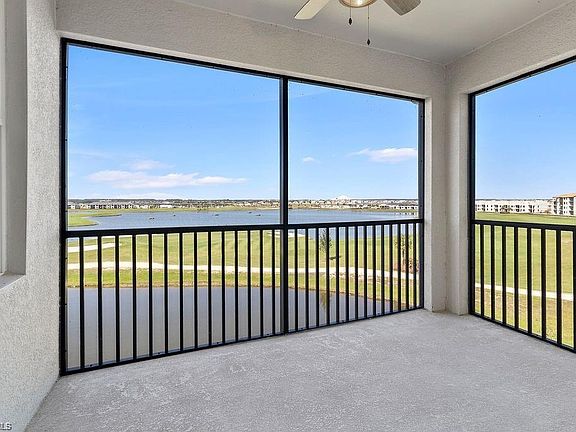 This exquisite Carolina unit features the largest floor plan in the Terrace collection at The National Golf & Country Club, offering over 1,300 square feet of living space with vaulted ceilings. This top-floor, corner unit has 3 bedrooms and 2 bathrooms, presenting breathtaking views of the lagoon, driving range, and resort style pool and Tiki Bar & Grill. This unit is conveniently situated next to The Golf Pro Shop. This unit is bundled with the Golf Membership for 2 at The National Golf CC. As the only Guarded & Gated community in Ave Maria, The National provides enhanced peace of mind and security. Just a short distance away, the Town Center boasts over 40 shops, a Publix Supermarket, restaurants, and services, along with free concerts and events throughout the year.