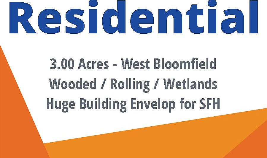The BENEFIT of this property... spectacular details follow... The BENEFIT of this Single-Family Home build-site *** 3.00 Acres *** Located in West Bloomfield with Walled Lake Consolidated Schools and West Bloomfield Mailing. This large Single Family Home parcel offers a huge building envelop for a spectacular home offering an abundance of extinguishing features. Located off of Drake Road, the property offered paved road access to M-5, Orchard Lake Road, I-696, Shenandoah Country Club, and more. City Water, City Sewer, Natural Gas, Electric, Phone, High Speed Cable are all available at the street. Excellent location to put your home in the spotlight. A short drive to everything you need including shopping, community services, restaurants, parks, churches, schools, trails, parks, lakes and so on. Do you desire a walkout/daylight basement? This lot has what it takes! Do you want a large home? Additional Garage? She-Shed? Gardens? Welcome to the property that can make these wishes a reality! How about a private basketball / tennis / pickleball court? Pool / Pool House? Large Circular Driveway, possible Fenced Yard? Again, you found it right here, look no further! NEED A BUILDER? Set an appointment to talk w/ a local premiere builder / sales team for a free consultation & TOUR current project. Several plans to view from Ranch, Cape Cod, Colonial & styles such as craftsman, rustic, modern, barn-dominium, farmhouse, green technology & others. Big or Small or even Medium, this location offers many possibilities for your dream home. SPEC HOMES AVAILABLE TO TOUR! Privately owned lot, please make an appointment to walk the property. SECURE THIS LAND TODAY. Secure Your Build-Site more quickly with a land contract. Need help making the transition from your current home to a NEW home, call for various lending options and free market analysis. New Construction, Conventional, Land Loan, we have great lenders to serve you.