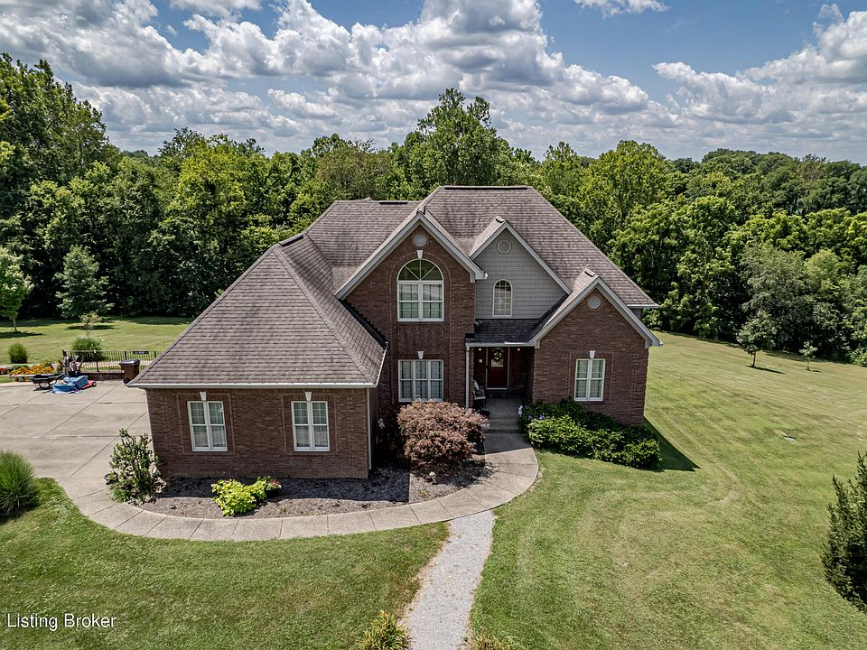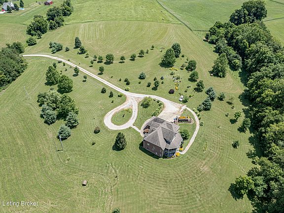 Nestled in a private setting is this custom home as it awaits its new owner to appreciate all the beauty it was built to share. Sitting inside a boundary to trees you will find over 4700 sq ft of all usable living space hosting 5 bedrooms, 3.5 baths, two story great room with wonderful natural light, dining area, custom kitchen, living room, downstairs family room, office, and kitchenette and the list goes on. Hardwood floors, custom cabinets, natural light in every room, privacy yet convenience to the interstate are just a few of the many pleasures you will enjoy Imagine the endless hours on the covered upper-level back porch as you listen to the creek rustling and wildlife outside. Or enjoy the open lower-level patio off the family room as you drink the morning coffee and wake up with nature. All this sits on 21.57 acres of farmland that produces good hay. Land lays well for cattle or horses. If you need more land, maybe that can be arranged. You will be amazed with the quality detail inside the house and once you enter you feel like you have come home. Sellers have had a great life there but have now decided its time to scale down.