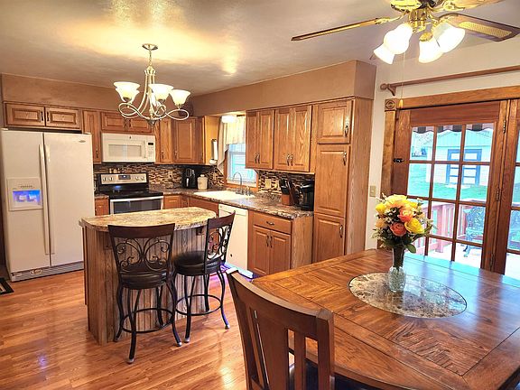 Don't miss out on this fantastic 3–4-bedroom ranch! You'll love the large, remodeled kitchen/dining room area with sliders to the deck with a retractable cover, fenced-in back yard, spacious shed & a covered 3rd stall for extra parking spot. Living room features a fireplace, the main floor also has 3 bedrooms & a nice tub/shower combo bathroom. The lower level has a family room with an egress window & could be used as a 4th bedroom or a wonderful master suite with an enormous bathroom, tons of storage & updated mechanicals.