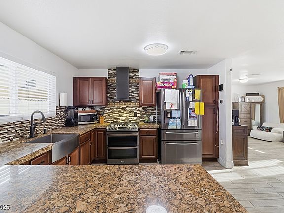 Welcome home to this highly upgraded home, ideally situated on a corner cul-de-sac lot with Mountain Views, RV parking, and no HOA restrictions. Offering the perfect blend of comfort, style, and functionality, this property is move-in ready and designed for everyday enjoyment. Step inside to find ceramic tile flooring and upgraded baseboards throughout, complemented by new energy-efficient windows filling the home with warm natural light. The inviting kitchen showcases granite countertops and stainless steel appliances perfect for cooking and entertaining. Major improvements give you peace of mind for years to come with a newer roof with new plywood, a full exterior re-stucco and fresh paint enhancing the home’s curb appeal. The low-maintenance front yard includes faux grass, while the backyard is an entertainer’s dream with a large covered patio, sparkling pool, basketball hoop and a fully insulated 14' x 14' storage room, perfect as a workshop, hobby space, or extra storage. Enjoy!