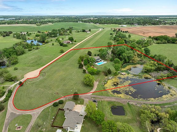 Completely updated home just South of Goddard. Enjoy country living and views for days on this 7 acre homestead. The whole home has been updated by the current owners including adding a deck the length of the home to admire the amazing views! You will find a saltwater pool, pond with a dock, chicken coop, acreage, AND A PRIVATE AIR STRIP! Don't have a plane or need an airstrip? That's ok, this then just becomes another acre of land to play on. Inside you will find 5 bedrooms with one having a mini kitchenette and off the pool/ patio. This home has 3.5 bathrooms with one of them conveniently located off the pool area as well. The home is perfect for families and/or entertaining!