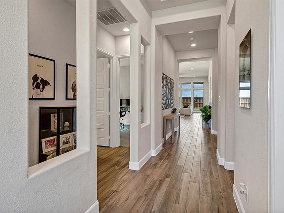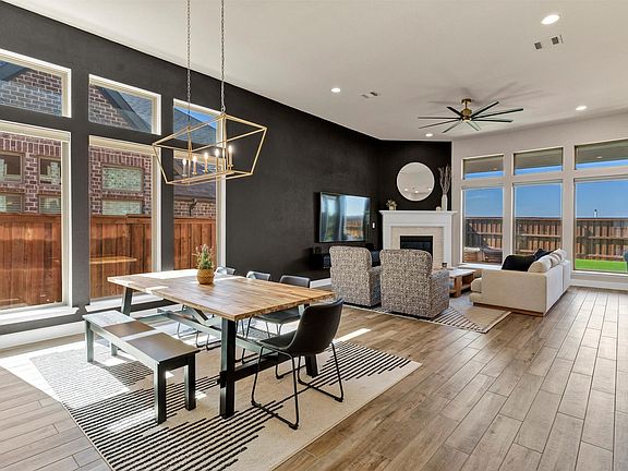 Discover modern living in this stunning 3,112 sq ft home nestled on a 60 foot lot in the sought-after Ventana community. Less than three years old, this 4 bedroom, 3.5 bath home offers thoughtful design and exceptional upgrades throughout. The open concept layout features a dedicated study, media room, and spacious living areas ideal for both relaxing and entertaining. The gourmet kitchen flows seamlessly into the dining and family room, creating an inviting space filled with natural light. The primary retreat is a true retreat, featuring two large walk-in closets and a luxurious soaking tub in the spa inspired bathroom. Every bedroom offers generous closet space, adding to the home's remarkable storage options. Step outside to enjoy a low maintenance backyard with artificial turf, a large covered patio perfect for entertaining, and even a built-in doggie door for your furry friends. A three car garage provides ample parking and extra storage. Located in one of Fort worth's most desirable neighborhoods, residents of Ventana enjoy resort-style amenities, scenic walking trails, and easy access to shopping, dining, and schools.
