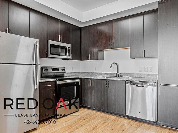 ~1 Month FREE~ Spectacular Two Bedroom with Central Heat and Air, Private Balcony, Stainless Steel Appliances, Resort-Style Amenities, In-Unit Laundry, and Included Parking ~ In PRIME Hollywood! *Move-In Special* *Tenant will receive a one-time credit of 1 Month FREE off of the Market Rent Price of $3,350.00. The NET EFFECTIVE RENT shows the savings over the entire lease term. The advertised price is based on the NET EFFECTIVE RENT. * Home Highlights: Incredible Style: Step into a building that boasts exceptional curb appeal and eye-catching murals. Spacious Rooms: Revel in an open-concept living area with gorgeous hardwood vinyl flooring. Temperature Control: Enjoy year-round comfort with a central heating and air system. Brightly Lit: Large windows flood your home with natural light, enhanced by modern lighting fixtures. Private Balcony: Relax on your expansive private balcony, soaking up the California sunshine and fresh air. Culinary Haven: Cook with ease in a kitchen featuring hardwood cabinets, granite countertops, and stainless steel appliances. Dining In: Savor meals in a cozy dining area just steps away from your kitchen in the open floor plan. Relax in Comfort: Unwind in bedrooms that offer spacious closets, including a walk-in, and large windows that invite ample natural light. Bath Retreat: Choose between a soothing soaking tub/shower combo or a jacuzzi tub. Both bathrooms feature large vanities with ample storage and well-lit mirrors. In-Unit Laundry: Experience the convenience of having your own washer and dryer at home. Available Parking: Secure parking for your vehicle in a nearby paid lot. Unmatched Community Amenities: Elevate Your Lifestyle! Secured front door entry Smart home features with Dwelo Heated rooftop pool and jacuzzi/spa Fitness Center Community Courtyard Community BBQ and Picnic Area Entertainment Lounge Office Lounge 24/7 Emergency Maintenance Services Online Payment Services Embrace Smoke-Free Living Situated Perfectly: Nestled along iconic Sunset Blvd, you're just steps away from exceptional restaurants, trendsetting nightlife, and Hollywood's glitz. Effortless access to public transportation, markets, schools, and the 101 freeway. Seize this Opportunity - Available for an immediate move-in. LEASE TERMS: One Year Lease Pictures and descriptions are of exact unit Square Footage is approximate. Showings may not be 1-on-1. All information must be validated on Red Oaks Website since 3rd party websites can feed incorrect information.