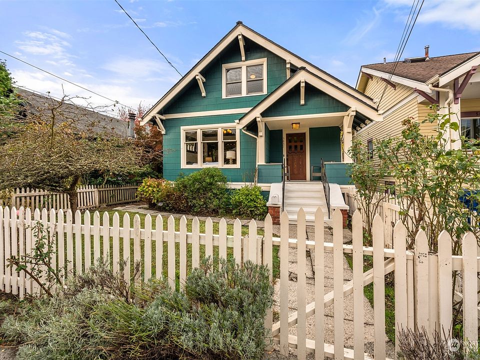 Turnkey 1916 Craftsman, charm intact, w/ careful attention paid to recent updates. From the picket fence, to the open porch & period entry door, this home is super inviting. Inside you're greeted by beautiful original millwork, oak floors, wavy glass windows, high ceilings, period lighting. Crown molding, mahogany & leaded glass built ins. Classic engraved subway tile backsplash, maple cabinets, slab granite, farmhouse sink. A cozy breakfast nook. Binge-watch your favorite shows in the den. A large main floor bedroom & period bath round out main floor. Skylit upper floor offers a primary bedroom & 2nd guest room that share a gorgeous tiled bath. Daylight basement, detached shop. Updated wiring. West facing deck off kitchen, & sunny yard.