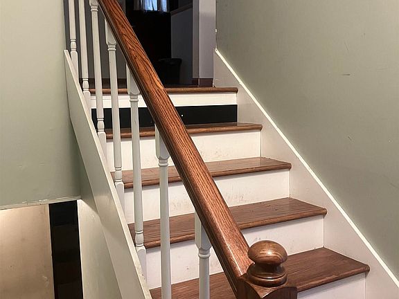 Fireplace with gas logsElectric stoveBack deckBuilt-in microwaveStainless steelHardwood floorsUpdated cabinets