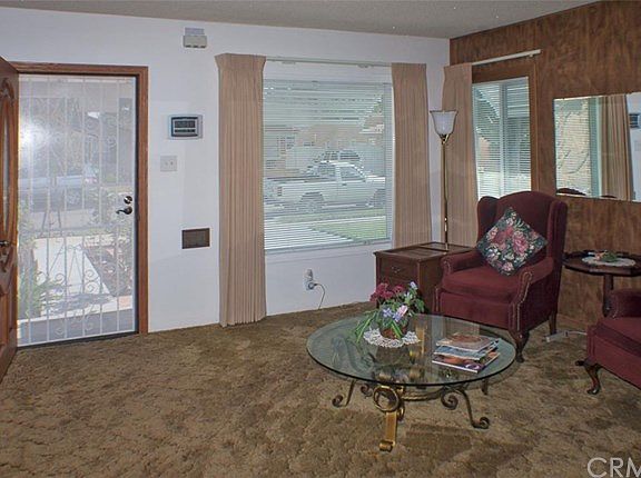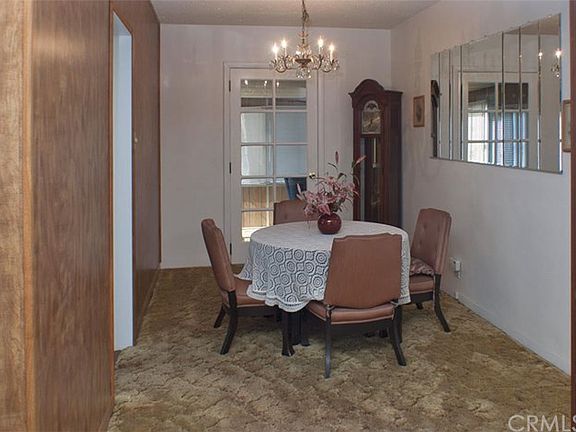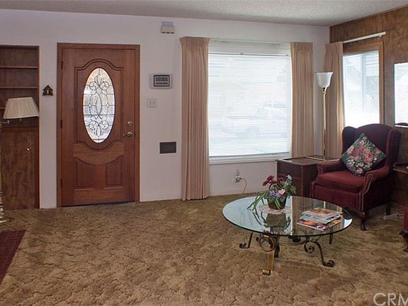 True, pride of ownership. Central Heating & Air Conditioning, new Brothers dual pane windows, copper plumbing. Spacious 2 bedroom, 1 Remodeled walk-in bathroom with full Italian tile surround, Living room inlcudes a picture window, solid wood beveled glass front door, built-in bookcase & cabinet. Dining room with a 5 light chandelier. Remodeled kitchen includes granite counter tops and granite backsplash, new cabinets, exhaust fan over self-cleaning gas stove, engineered hardwood floors, hook-ups for stackable washer and gas dryer. Estimated square footage of 1,000 sq. ft., includes the enclosed patio located off the dining room which has been carpeted with air conditioning currently being used as a family room. Front bedroom is spacious (approx. 15' x 12') with mirrored wardrobe closet. Two car garage has carpeting. Meyer lemon, orange, grapefruit & tangerine citrus trees, large patio & storage shed in rear garden.