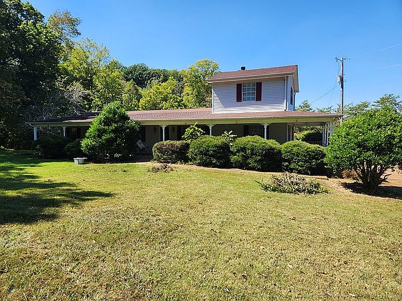 Ranch style, 1 1/2 stories. Big concrete driveway. Master bedroom and bath on 2nd floor with fireplace and small deck overlooking a pond and hillside. Hardwood floors, tile kitchen and bathroom floors. 3 bedrooms and 1 full bath on 1st floor. extra bedroom or office/workout room off the back bedroom. Livingroom has carpet and gas fireplace. wrap around front porch. Gas heat central air, septic with city water and a old well house that works. big back covered porch for storage. good roof and hvac. sitting on 2.5 acers.