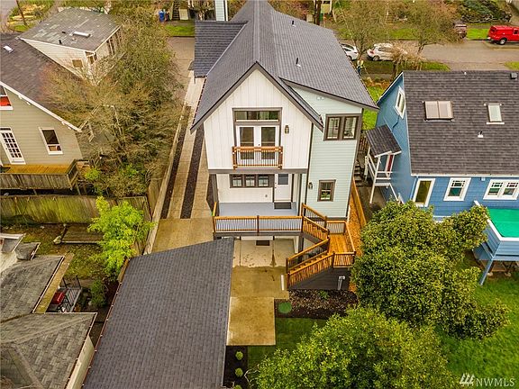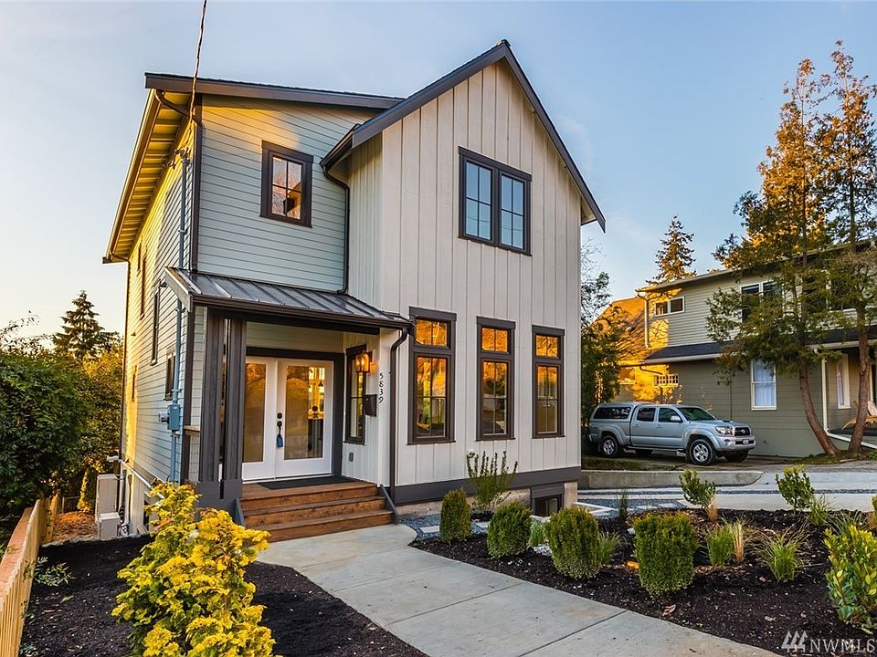Welcome to a stunning New Modern Farmhouse design w/ great proportions, aesthetics, detailing, & lovely sunset views over the Olympic Mountains. Open plan main has hardwood floors, built-ins, custom colors, picture windows & modern lighting. Gorgeous kitchen w/ SS appl., quartz counters, & soft close cabinets. Upstairs are 3 bedrooms & 2 baths incl. a lovely & private master suite. There's a permitted MIL/nanny quarters, detached garage, & superb walkability to local schools, retail & The Zoo!!