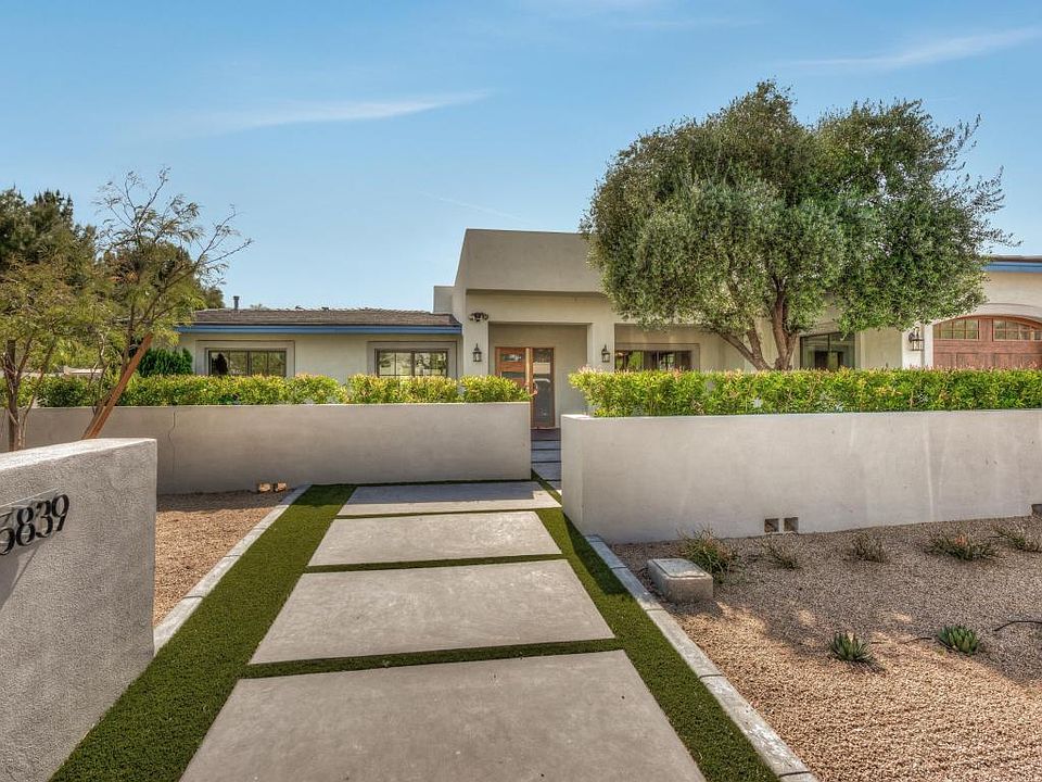 Fully permitted and documented rebuild on one of the best lots in Country Estates. Sophisticated California Coastal design with attention to detail. Full rebuild at almost 3800sqft, Spacious master suite, 3 secondary bedrooms, Chef's Entertaining Kitchen, Den/TV Room or office, and rare four car garage. Quality materials throughout, wood floors, custom cabinetry, exceptional granite counters, Wolf/Sub Zero appliance package, walk-in pantry, breakfast area, touchdown office nook, even a wine refrigerator. Backyard utopia with mountain views, staggered covered patios, sparkling pool, BBQ area. One of the best values in 85253.