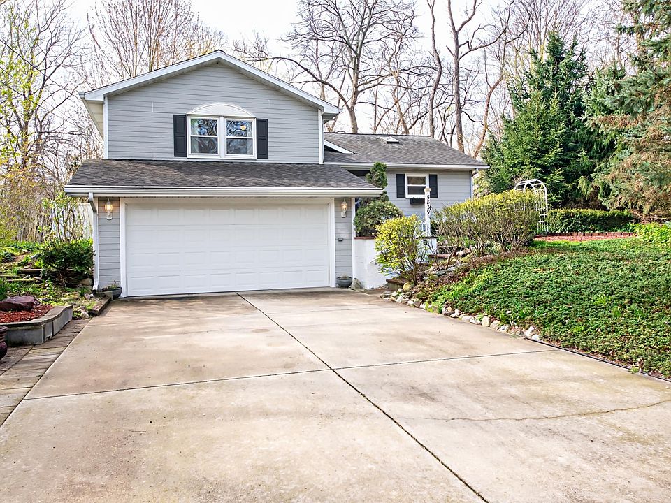 Built in 1988 this 3 bedroom, 2 full bath home is a special treat! Hardwood floors, open concept between living room w/vaulted ceiling & fireplace and the kitchen. Master suite includes a master bath & walk-in closet, plus sliders to a balcony deck and access to the private wooded backyard. Large bedrooms & closets. Quaint sunroom off of the dining area. All kitchen appliances and stackable washer/dryer are all included. Covered front porch and 2 car attached garage. Enjoy your morning coffee on the large back deck or the brick patio and take in the scenery of nature (4 seasons of beauty). This is a tri-level style home and offers great storage area in the large cement crawl space. New furnace 2014. Great location close to Watermark Brewery, Full Circle Cafe, Red Coach Donuts & much more!