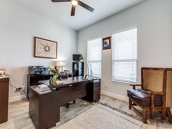 This stunning 4 bed, 3.5 bath brick home offers both luxury and privacy, situated on an oversized lot featuring a 3 car garage and wood privacy fence. The open concept design allows plenty of natural sunlight highlighting the striking stone wood burning fireplace in one of the two living areas. This chef inspired kitchen is a standout with its massive island offering both storage and seating complimented by stainless steel appliances, granite countertops, and custom cabinets. A formal dining room sets the stage for dinner parties or large family gatherings. The office provides a quiet space for work or study. The primary bedroom is a true retreat, with its double vanities, spacious walk in closets, and plenty of room for relaxation. Outside the covered back porch is the perfect place to unwind and enjoy peaceful outdoor moments. Maintain a healthy lawn in the Texas summer heat with this automated sprinkler system. This thoughtful layout is designed to meet all your needs. Call and schedule your private showing today.