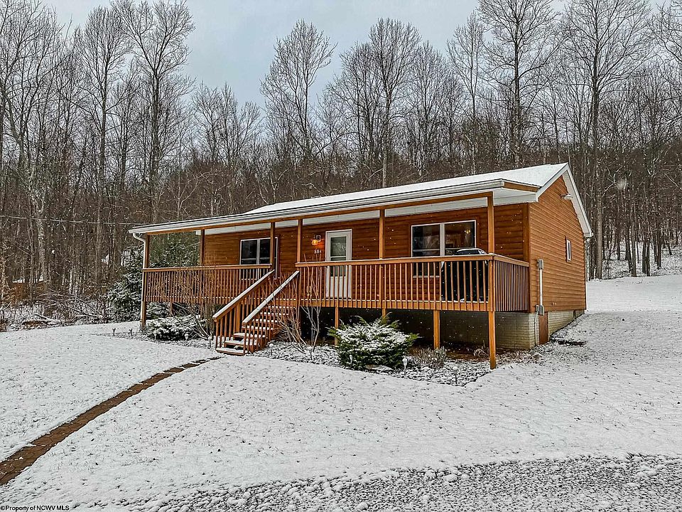 Rare opportunity for endless nature in the quiet WV countryside! Near Big Sandy River! Located just minutes from I-68. Situated on 5+/- wooded acres, Warm up next to the wood stove in this wood ranch style home. This 2 bedroom home boasts a covered porch with views, new wood flooring, new stainless kitchen appliances, bathroom tile. For your storage needs, this property has 2 storage buildings plus an additional carport. Won't last long!