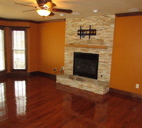 Truly Amazing!! This is a must see home!! Open floor plan upon entry w/wood flooring, dining area, wine closet w/cooler, granite counter tops, island w/ granite composite sink, walk in pantry, hot water on demand system in kitchen, custom designed cabinets, all appliances are Kenmore Elite w/commercial Zepher Vent, built in microwave, convection oven, gas stove top, family room with gas fireplace w/remote, surround sound, master suite downstairs w/hurricane doors going out to the back patio, master bath w/custom double vanity, 48x60x32 deep 10 jets sunken tub, 7x8 glass shower w/12inch shower head, Rinnai System throughout home, electric fireplace, master bedroom walk-in closet has custom cherry cabinets, many extra storage spaces. 3 Bedrooms upstairs includes 2nd master bedroom w/walk-in closets, new carpet, freshly painted throughout, new windows, crown molding, split units, newer roof, 32x32 workshop w/2 doors, security system w/cameras. TOO MANY EXTRAS TO LIST!!