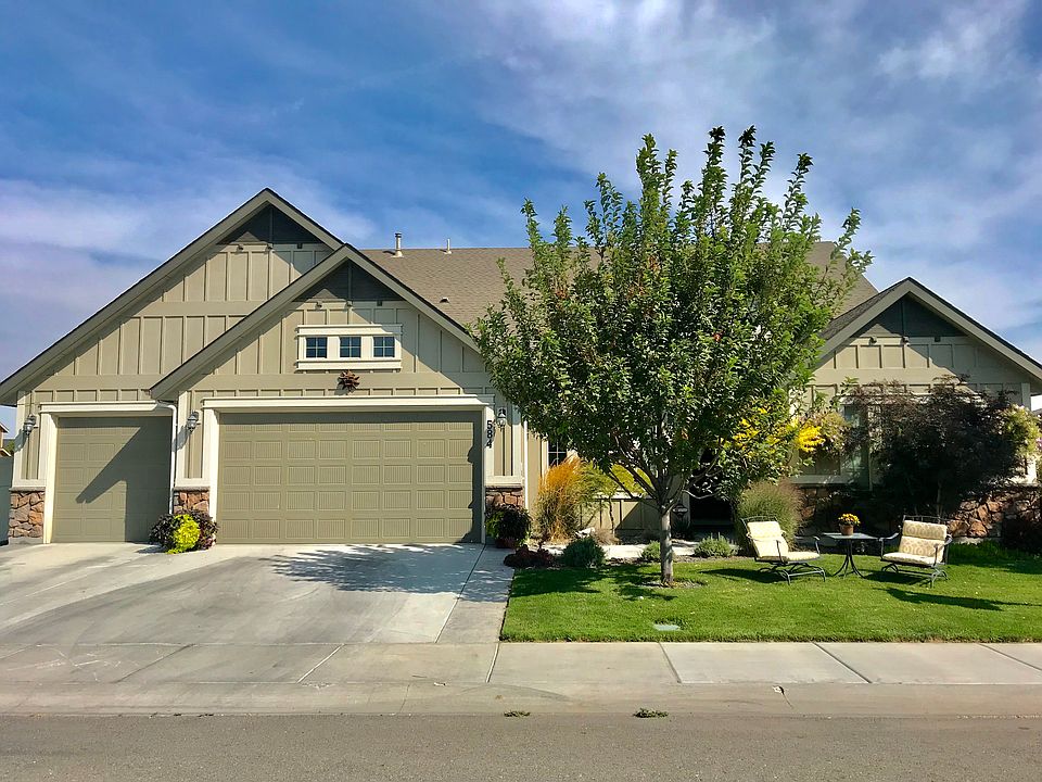 See link for live walk through! You will find this warm modern home nestled across from a park, walking distance to restaurants/stores, canyon rim trail, and Rock Creek Elementary and just north of St Lukes hospital. Entertain in this single level open layout with vaulted ceilings. Including up-bonus room, office, over sized quarts island, hardwood and tile floors, stainless steel appliances, stamped concrete, mature landscaping, raised bed gardens, oversize 3 car garage.