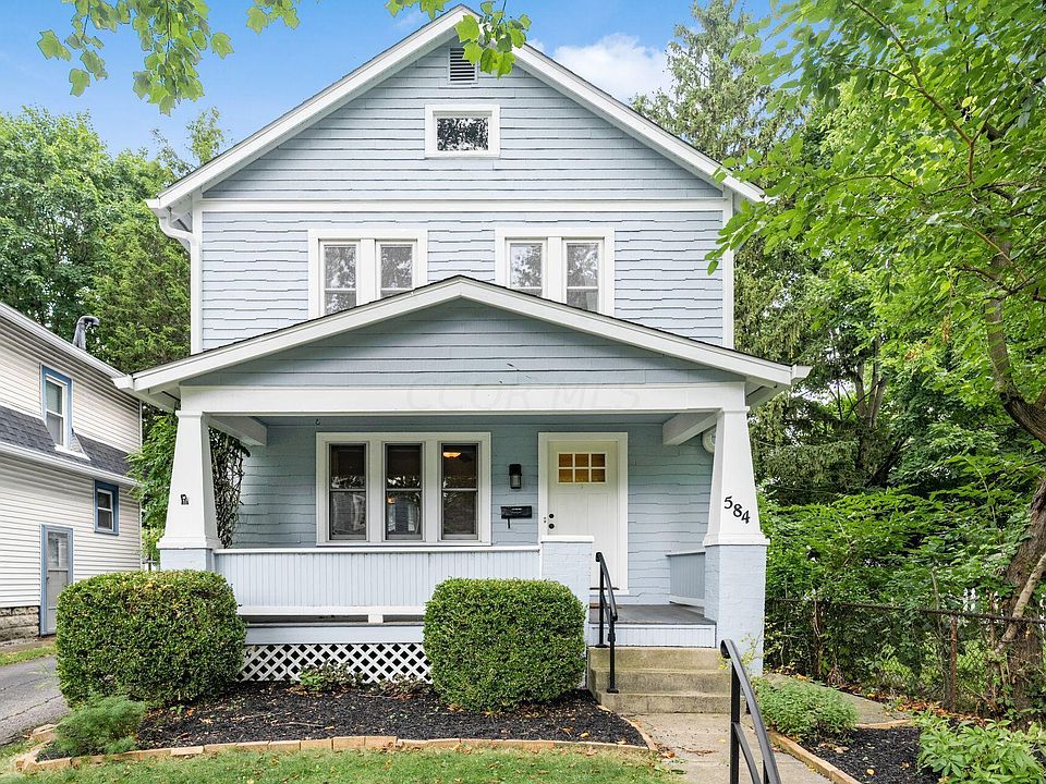 Charming two-story home in prime Clintonville! This home seamlessly blends vintage charm with modern living. Elegant orig refinished hardwood flooring and woodwork throughout, and a cozy fireplace are key features in this c.1927 home. Featuring two spacious bedrooms with generous closet space. The bath w/ a linen closet has been beautifully renovated with tile flooring and subway tile in the bath/shower. Read a book on the delightful front porch, dine al fresco all summer in the cozy vaulted screened-in porch in the back. A patio, fire pit, and a large yard are ideal to expand your entertaining and gardening. An oversized two-car garage offers ample storage and parking. Easy access to public transportation and major highways, OSU, the new Yellow Springs Brewery, & Studio 35!