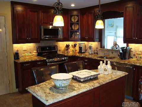 South Freeport, Mint Condition, 3 Bdrms (Mstr. Is A King Size Bdrm W/.5 Bth), Beautiful Eik W/Granite-Ss Apliance-& An Island, Formal Dr, Lr, Den Approx 15 X 21, Family Rm In Lower Level W/Fbth, (Total 2.5 Bths), Huge Yard W/Semi In-Ground Pool,Koi Fish Pond, New Roof, Heating System & Kitchen, Alarm System,All Permits In Place, Don't Windshield, Must See!