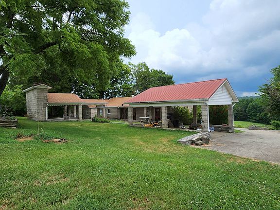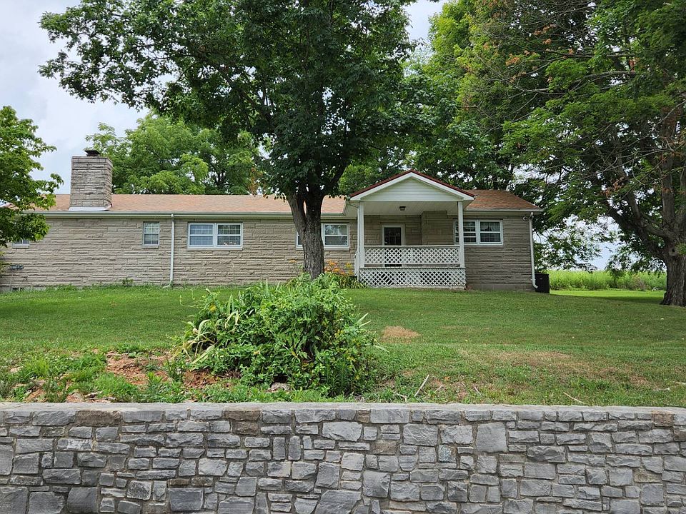 Come live in the country! Leave the city life behind! This bedford stone home in the country on nearly 3 & 1/2 acres of land has a large open living and dining area, 3 bedrooms, 1 & 1/2 baths, the full bath features a double bowl sink, a make-up station, jetted tub and separate shower. There is also a large utility room. Outside you'll find a covered patio with outdoor fireplace, a great place for an outdoor kitchen. There is also custom built stone raised bed garden set up for an irrigation system and a stone water feature fountain. There is a deck in the front, a great place to view the fields and hills in the distance. There is an unattached garage and large carport. The yard is shaded and the land has some wooded area as well as a spring. The drive to this home has some beautiful views of the country. Call for more details!