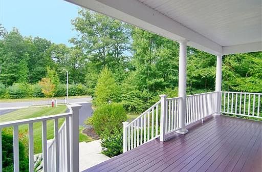 Amazing home in move in condition, neutral palette for any taste, lovingly cared for and maintained. Inviting farmers porch recently stained, welcomes you into the two story foyer, most of first floor is hardwood, 9' ceilings and an open concept plan with additional den/hobby or play room off oversized family room which includes the flat screen TV. Master with private luxury bath, double sinks, soaking tub and separate shower. Bedrooms are very liberal sized, barely lived in as well as main bath. Kitchen offers granite counters with island, eat in area and access to recently stained deck. Sits back from road for privacy with beautiful wooded views from almost every window, still having the benefit of being in wonderful neighborhood setting. Considering new construction? Check this out first, better value ! Now is your opportunity to buy a home in like new condition in a highly sought after neighborhood!