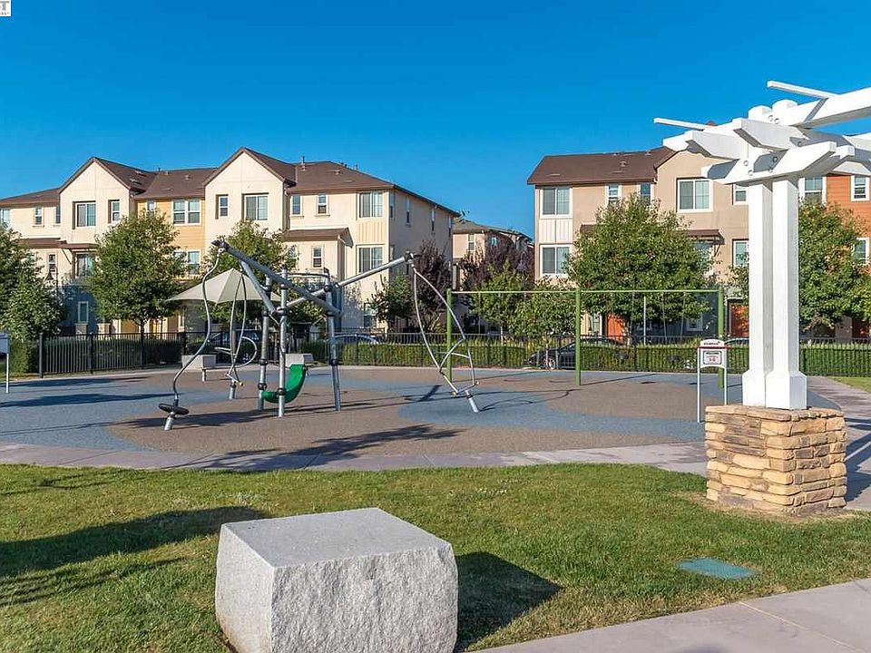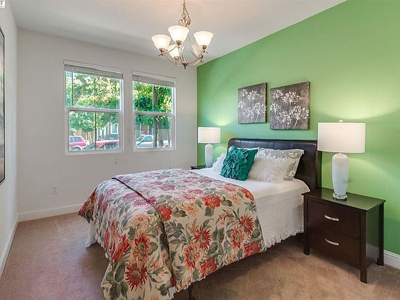 This is one of the best of large floor plans in the development. Open and airy, sunny & bright throughout. Kitchen has upgraded cabinets, granite counter tops with island and stainless steel appliances. Modern lighting, with new hardwood flooring in common areas and new carpet in bedrooms. One bed and full bath on the ground level is great for guests or in-laws, and a finished two car garage. Walking distance to public transportation like Bart and Amtrak, and also downtown (including the new library).