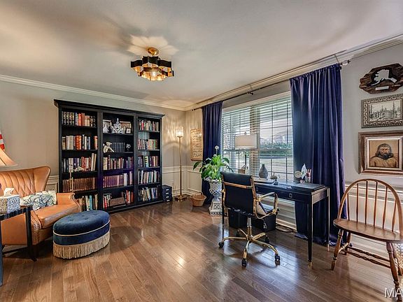 Experience refined living in this elegant ranch home, ideally situated on a private corner lot. A welcoming foyer leads into a seamless layout where hardwood floors extend throughout and craftsmanship is on full display—crown molding, recessed lighting, and thoughtfully designed living and dining spaces set the tone for timeless style. The main living areas—office, living room, and family room—offer distinct purpose yet flow effortlessly from one to the next. The spacious family room, anchored by a brick gas fireplace, creates a warm, inviting atmosphere and is generous enough to accommodate dual uses, it currently serves as both a sophisticated dining space as the heart of the home for effortless entertaining. From here, access to the deck and fenced backyard extends your living area outdoors, perfect for hosting gatherings or enjoying a quiet morning coffee. The updated kitchen blends beauty and function with custom cabinetry, abundant storage including a new pantry, granite countertops, a designer tile backsplash, and stainless steel appliances featuring a dual fuel stove with convection oven. The main-floor laundry and attached 2-car garage add everyday convenience. Retreat to the luxurious primary suite, offering impressive space and a spa-inspired bath complete with dual vanities, a custom tile shower, and a walk-in closet. Two additional bedrooms and a beautifully updated full bath complete the main level. The expansive, unfinished lower level presents endless possibilities—ready for your personal vision. Outside, the fenced backyard provides the perfect balance of privacy and relaxation, completing this truly exceptional home. HVAC upgraded in 11/2024 - programmable to hold a consistent temperature, VAV system. Seller has installed a whole house generator for peace of mind in the STL weather.
